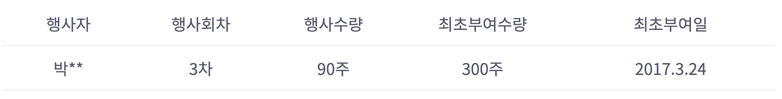 : 행사자는 주식회사 블로코의 직원으로서 세부 내역은 아래 표와 같음